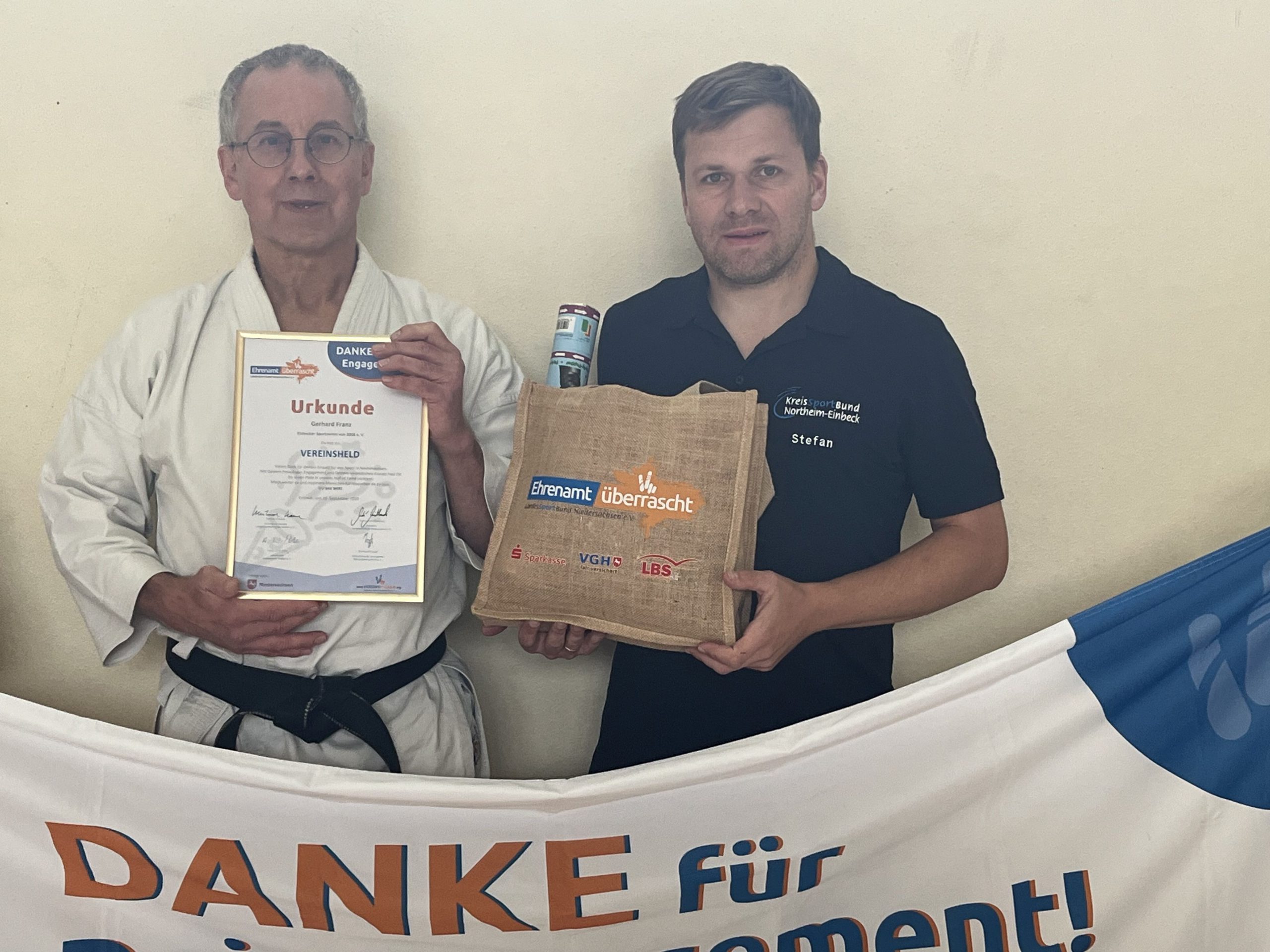 Im Rahmen der landesweiten Aktion „Ehrenamt überrascht“ des LandesSportBundes wurde Gerhard Franz für seine langjährige, ehrenamtliche Tätigkeit besonders geehrt. Neben den herzlichen Worten des Vorstandes vom ESV überbrachten auch Vertreter des KreisSportBundes Northeim/Einbeck, Stefan Zöll, liebe Grüße und kleine Geschenke, um seine unermüdliche Arbeit und seinen Beitrag zum Sport zu würdigen.
