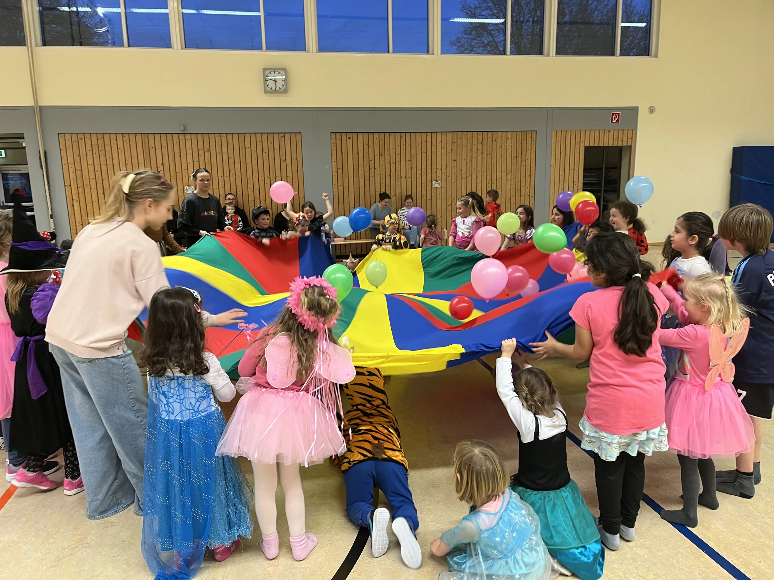 Mit Spielen, Toben, Naschen und natürlich einer Modenschau, verbrachten die Mädchen der Gruppen Sunnys und Alegri und wild Tigers eine tolle Zeit. Erstmal waren auch die kleinen Turnkinder zu Gast, da die Realschulhalle derzeit wegen des Wasserschadens gesperrt ist und sie bei den Tanzgruppen „Asyl“ bekommen. So waren es fast 50 Kinder, die über eine Gerätelandschaft turnten, verschiedene Spiele wie Zitrone und Fischer, Fischer spielten oder einfach nach der Partymusik tanzten. Das großen Schwungtuch mit Luftballons und Bällen war der Abschluss und so war es ein bunter Nachmittag mit vielen tollen Kostümen. Leider ging die Zeit viel zu schnell vorbei und alle freuen sich schon jetzt auf die nächste Sportstunde der anderen Art.